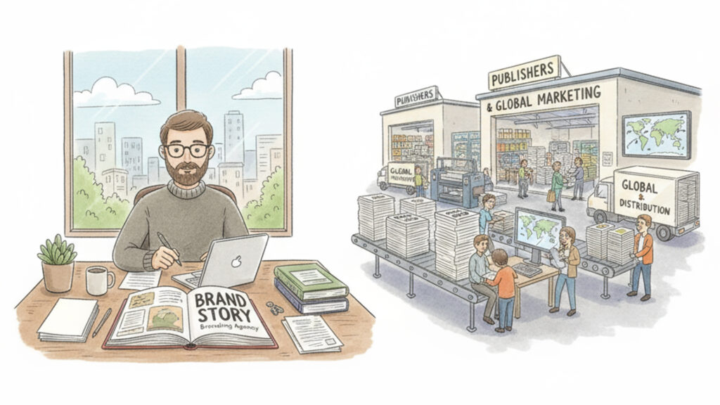 To simplify, a branding agency is the author who writes the story and defines the voice. A marketing agency is the publisher who distributes it and makes it a bestseller.