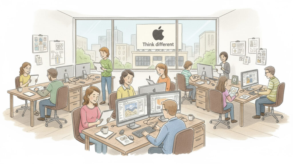 - Marketing: Minimalist campaigns like Think Different and Shot on iPhone focused big on lifestyle directly and not technicalities. Apple’s 2024 Doodle iPad Pro campaign reinforced the creative DNA of the brand, showing how branding drives marketing strategy.