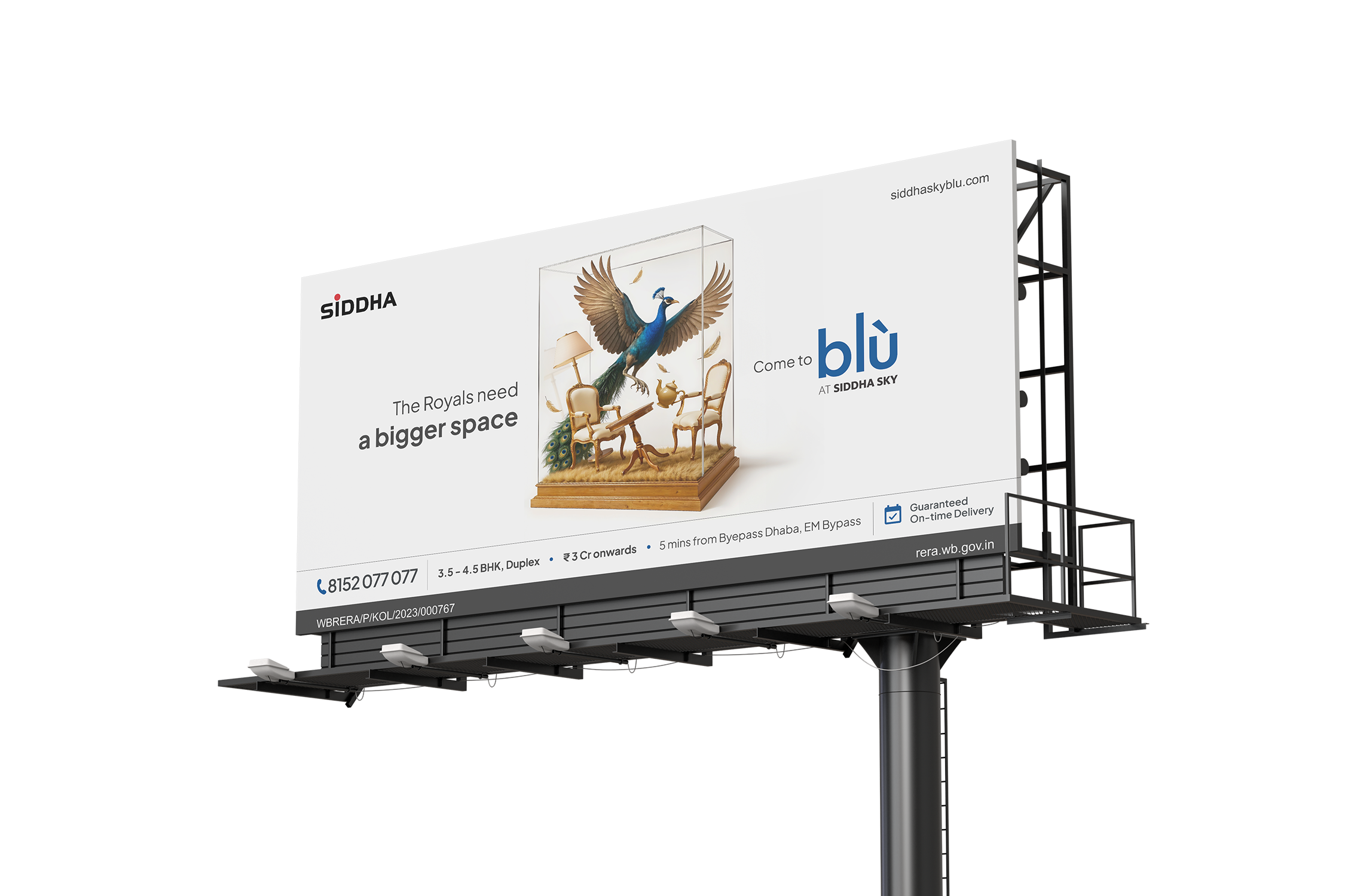 To bring this vision to life, we chose to narrate a story through contrast as a storytelling device. We illustrated the metaphor of living within a “confined space”, the very opposite of what blù stands for, and placed the royals of nature inside it. The thought was simple yet powerful: even the most majestic beings lose their splendour when restricted. In the same way, homes that lack space and openness cannot embody true luxury for those who seek elevated living.